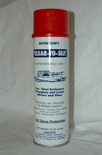 18oz .99 ------Auto, Boat, RV, Home & Commercial use. This product is safe on any surface that you can see through....cleans and protects plastic, glass, vinyl, tinted surfaces, & more.Will not harm any surface.....gauranteed! Leaves an unbeleivable "Klear" coating with no wax. 18oz "Klear-To-Sea" aerosol cleaner, polish, protectant with US Air Force, Boeing, and GE Mil Specs since 1975.. Reviews
